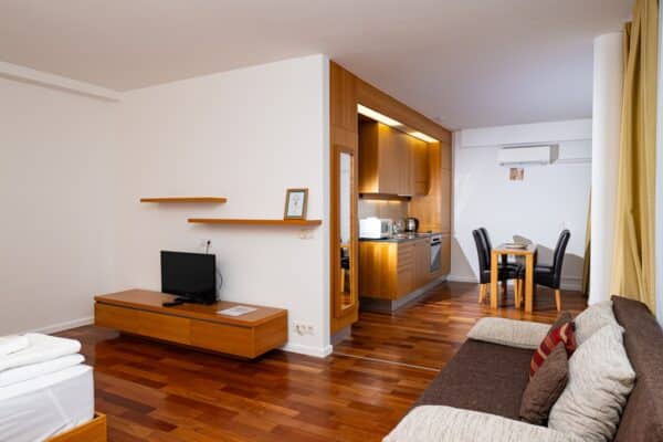 Jól felszerelt konyhasarokkal, zuhanyfülkés fürdőszobával, síkképernyős televízióval, légkondicionáló berendezéssel, valamint ingyenes szélessávú internettel rendelkezik, hogy vendégeink maximális kényelemben élvezhessék pihenésüket.