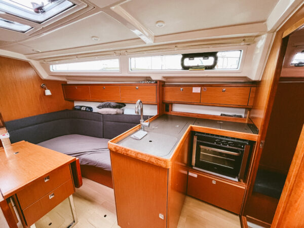 A Bavaria C34 ideális balatoni túrahajó, a legfontosabb dolgokat – a vitorlázás élményét és a teret egyesíti magában.